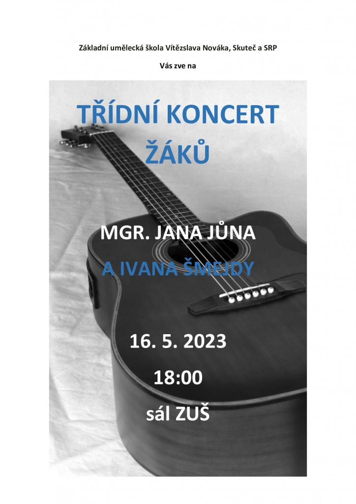 Zveme vás na třídní koncerty. 16. 5. vystupují žáci J. Juna a I. Šmejdy. Ve středu 17. 5. vystupují žáci V. Divoše a P. Šotty. Přejeme krásný zážitek.